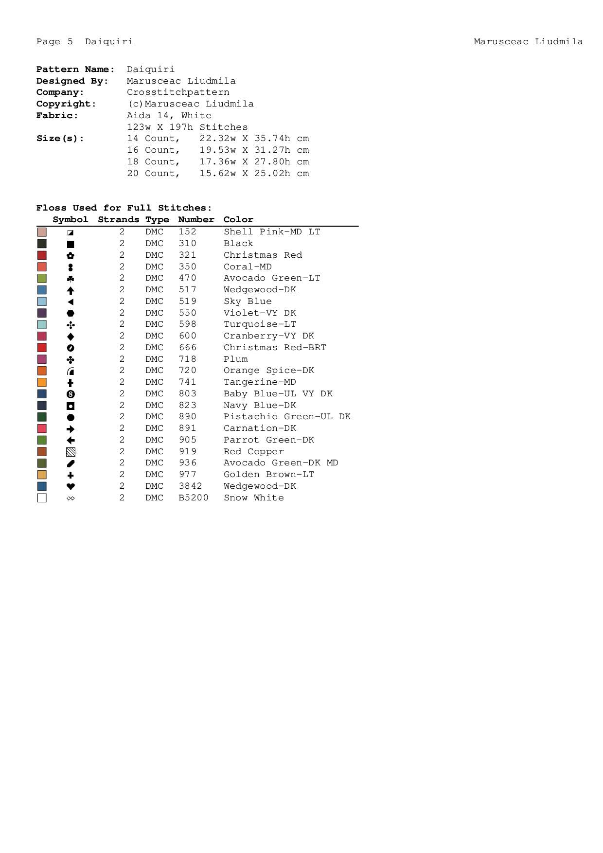 Stitches: Full cross stitches only